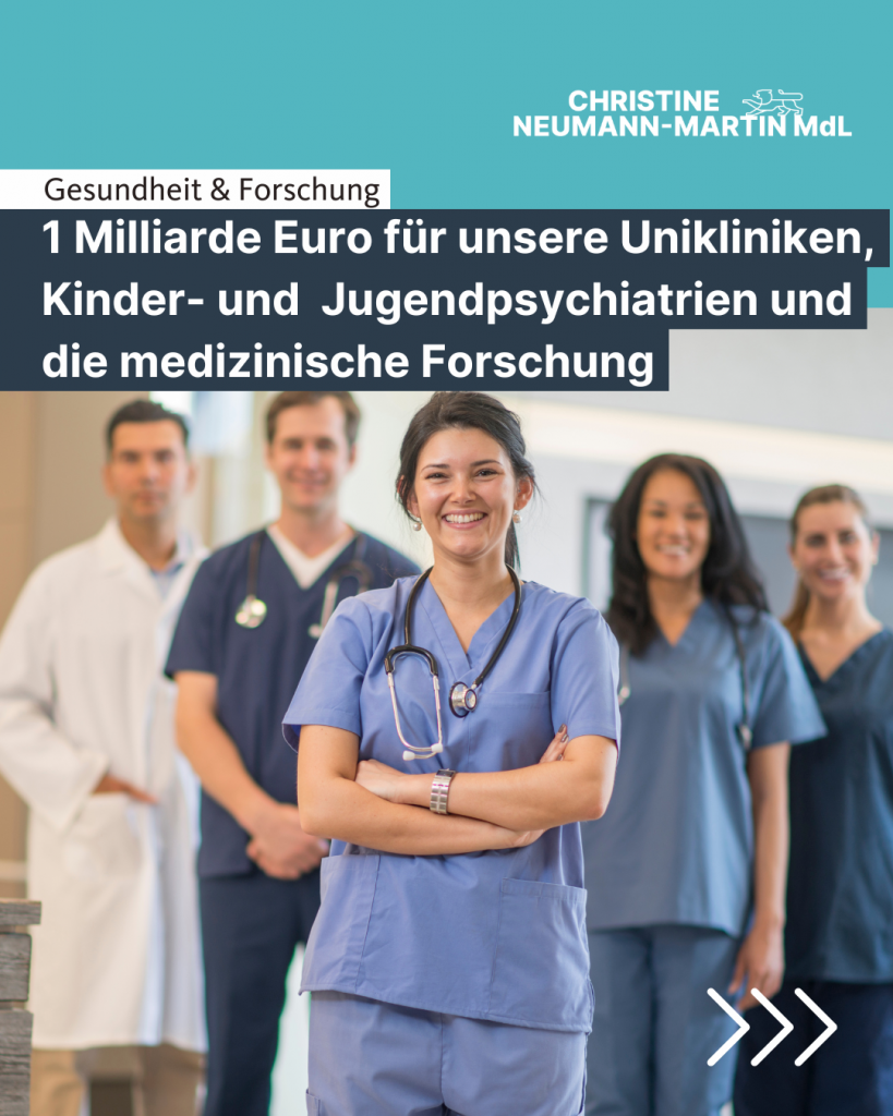 Mit rund einer Milliarde Euro modernisieren wir Unikliniken, Kinder- und Jugendpsychiatrien und stärken die medizinische Forschung.