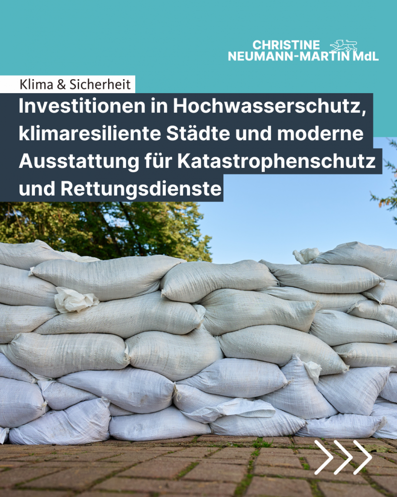 Wir investieren in Hochwasserschutz, klimaresiliente Städte und Katastrophenschutz, um mehr Sicherheit und Zukunftsfähigkeit zu gewährleisten.