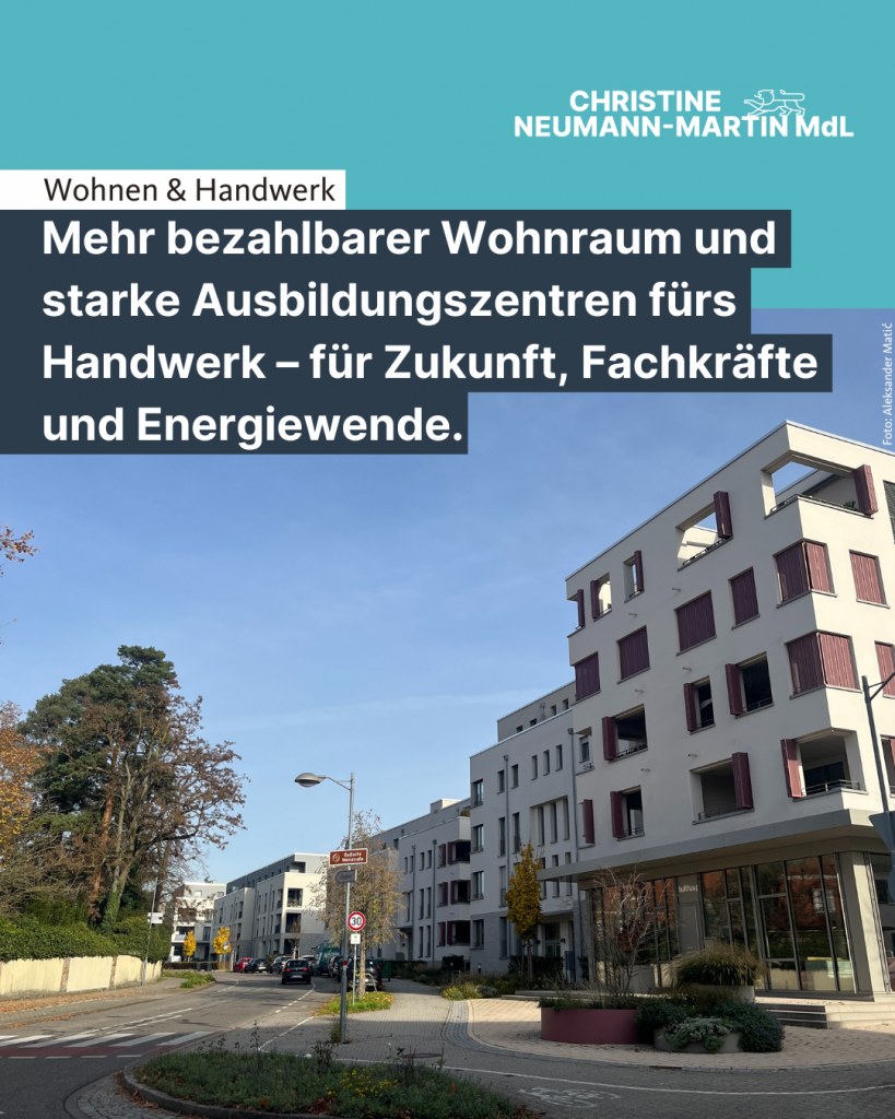 Zudem schaffen wir bezahlbaren Wohnraum und starke Ausbildungszentren fürs Handwerk, damit Energiewende und Fachkräftesicherung gelingen.