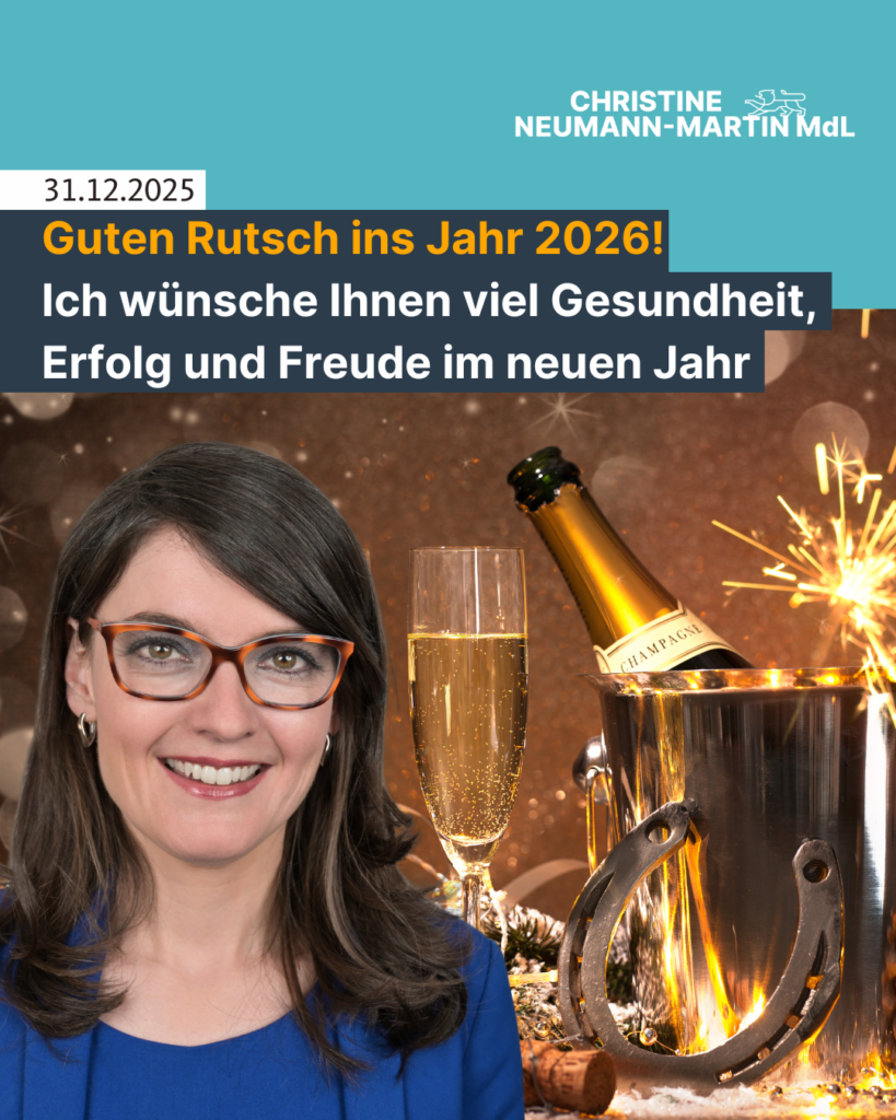 Für 2026 wünsche ich Ihnen viel Gesundheit, Zuversicht und Erfolg bei allem, was Sie sich vornehmen. Ich wünsche Ihnen einen guten Rutsch ins Jahr 2026!