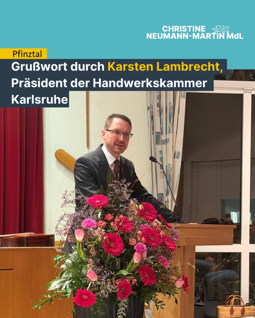 Vor dem diesjährigen Neujahrsempfang des Gewerbevereins Pfinztal konnte ich mich mit der Bürgermeisterin @nicolabodner über die Sportstättenförderanträge des ATSV Kleinsteinbach und dem TSV Berghausen sowie über den kommunalen Antrag der Hagwaldhalle unterhalten. Ich habe ihr meine Unterstützung für diese Anträge zugesichert.